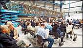 Linz - Vor der Kulisse des verrußten "Gletscherdrachen" wurde am Donnerstag in einer Industriehalle auf dem VOEST-Gelände in Linz der Kaprun-Prozess mit einem Lokalaugenschein fortgesetzt. Hinter der erhalten gebliebenen Zuggarnitur war das Brandrelikt des Unglückszugs zu sehen. Abgebrannte Kerzen und vertrocknete Blumen erinnerten an die Opfer, die am 11. November 2000 beim Brand in der Standseilbahn in Kaprun ums Leben gekommen waren. |
